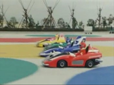 Here's a shot of the Red Ranger riding in his Turbo Cart.