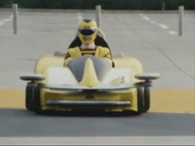 Here's a shot of the Yellow Ranger riding in her Turbo Cart.