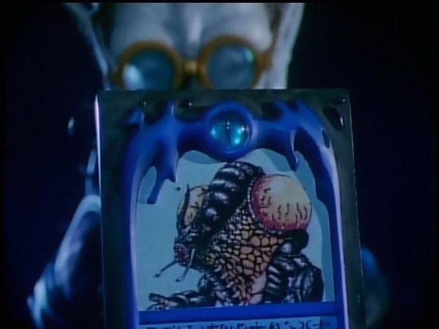 in his Monster Form, his name in Japanese characters appears on-screeen.