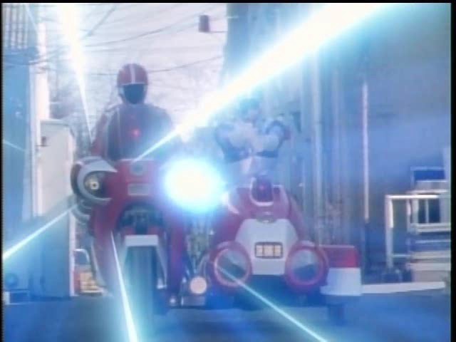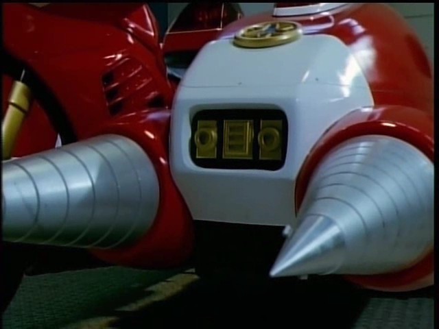 Here's a shot of the Red Ranger riding on his Cycle while he's firing