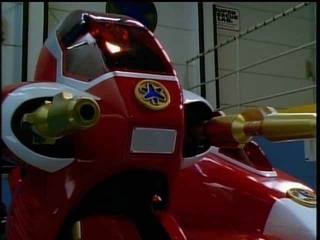 the Cycle's lasers and you can see the Blue Ranger is riding in the